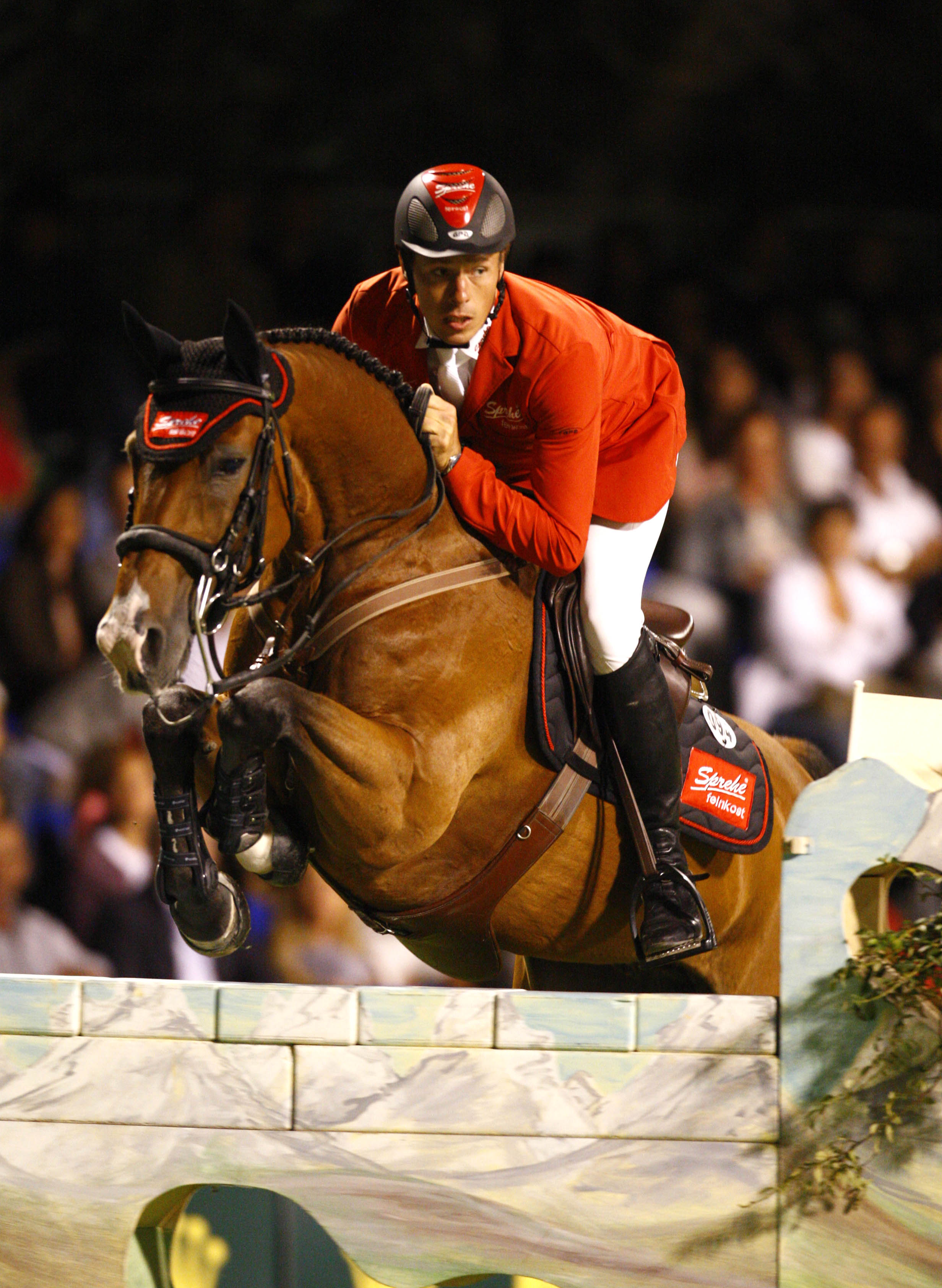 The Mediaset Grande Chasse, last class Saturday night at San Patrignano's CSI5* was a smooth victory for Christian Ahlmann. The European individual gold medalist in 2003 and three time team European Champion (in the juniors in Athens 1994, Donaueschingen 2003 and San Patrignano 2005), team bronze Olympic medalist took his Rheinlander gelding Perry Lee to victory with two clear rounds. His mount, by Pythagoras Z took fourteen fences (and two optionals)with apparent ease as well as speed (0/0 61.63").Behind the German rider were Belgian Francois Mathy Jr on Theodoor, a ten year old KWPN by Great Pleasure (0/0 63.20") and Ireland's Jessica Kuerten with the Selle Francaise mare Castle Forbes Myrtille Paulois, by Dollar du Munier and out of a mare by Grand Veneur (63.46").Fifth place went to another faultless round by Italian rider Gabriele Grassi who debuted this year at Piazza di Siena in Nations' Cup on the Irish grey mare Cruisella (65.21"), placing first among Italians in the class.Tomorrow is the last day of the CSI5*, and the first rider will take the field at 5pm for the class dedicated to young horses.